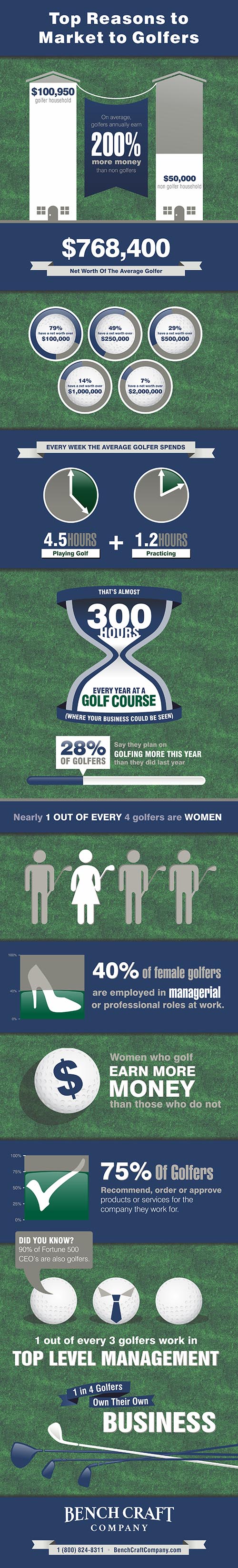 The Average golfer plays 60 rounds each year, practices 1 hour 11 minutes each week, and plays for 4.5 hours each week. That’s 300 hours each year at a golf course!