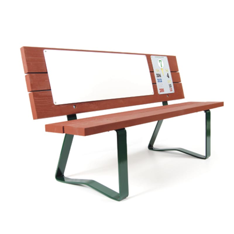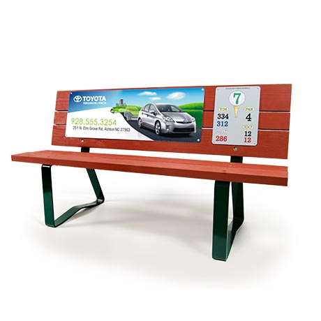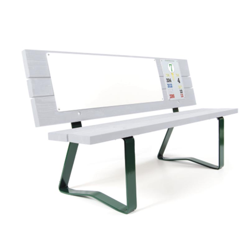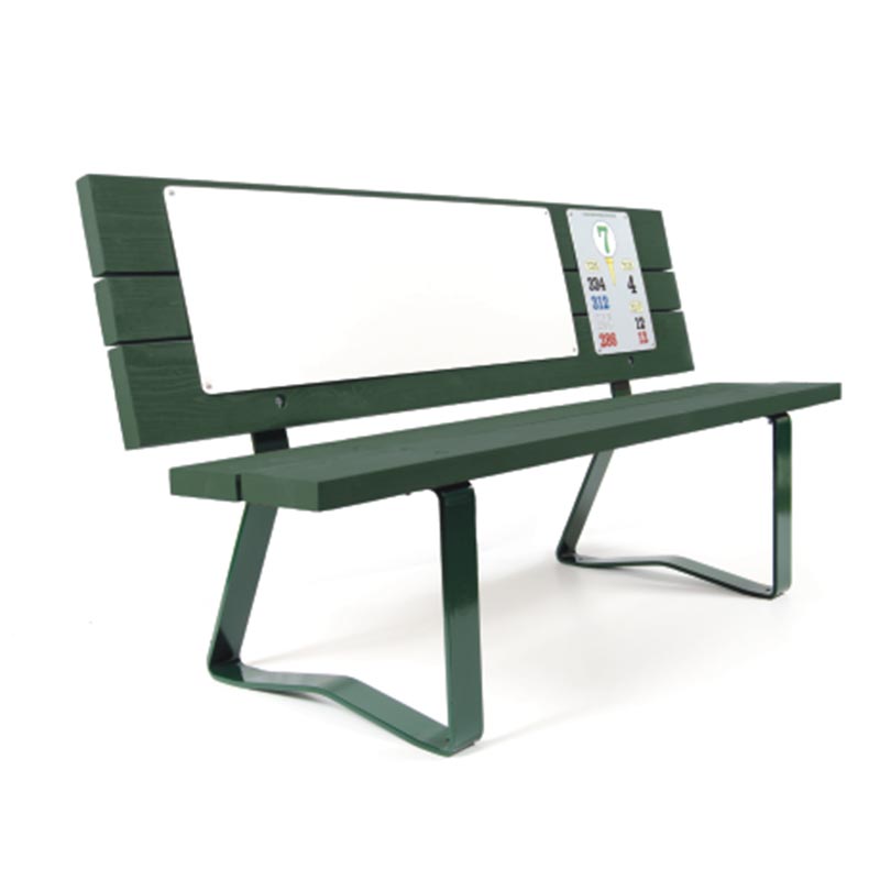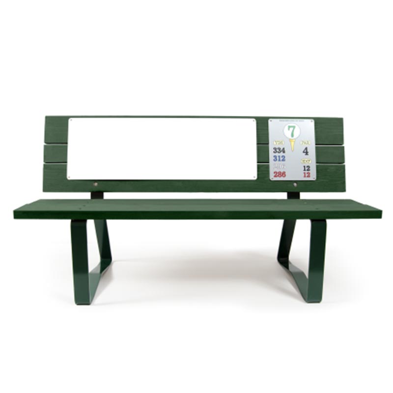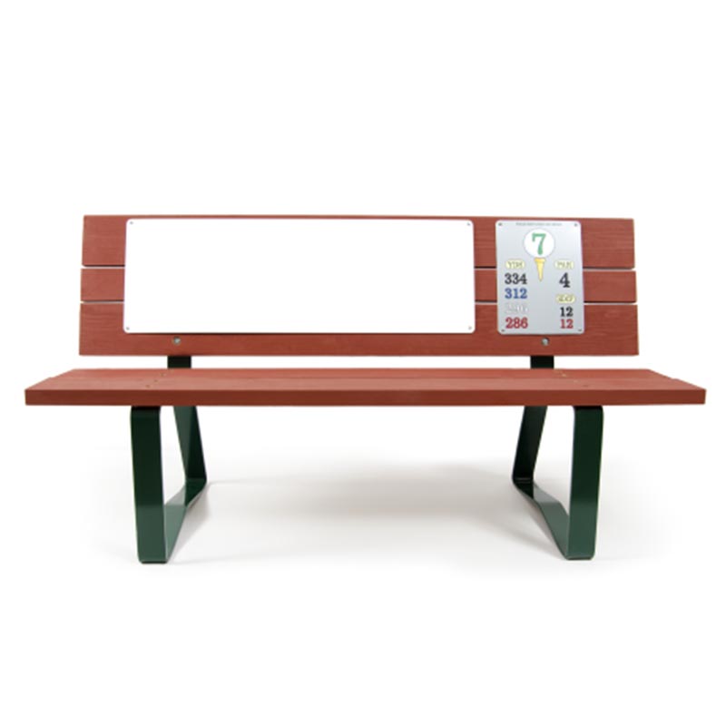 Benches are placed at tee boxes and other high traffic locations such as the driving range, in front of the club house, and near putting greens. Golfers constantly refer to the par, yardage and handicap information and continually interact with the benches throughout their time on the course.