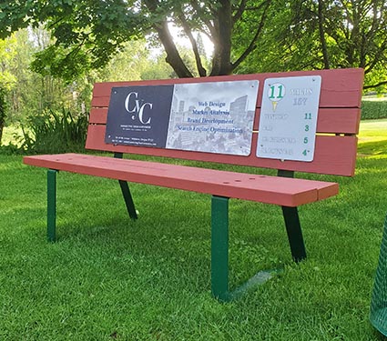 Benches offer businesses the largest advertising spot available on the course. As an advertising sponsor, your message will be easily visible from quite a distance.